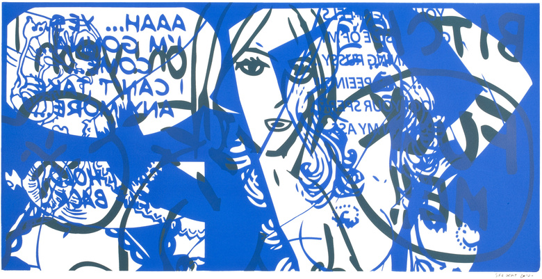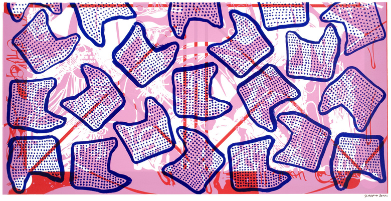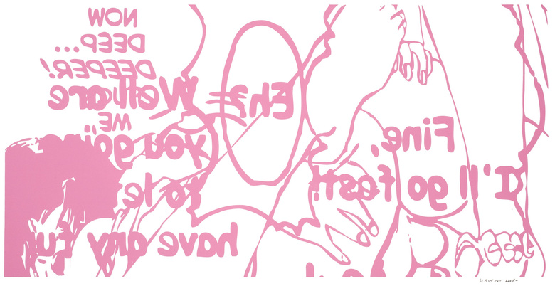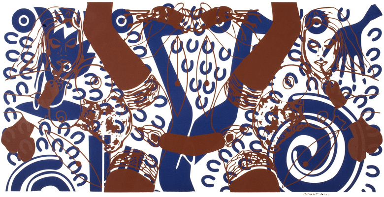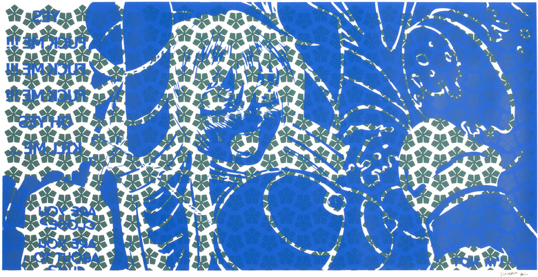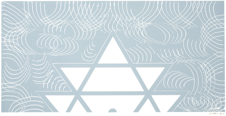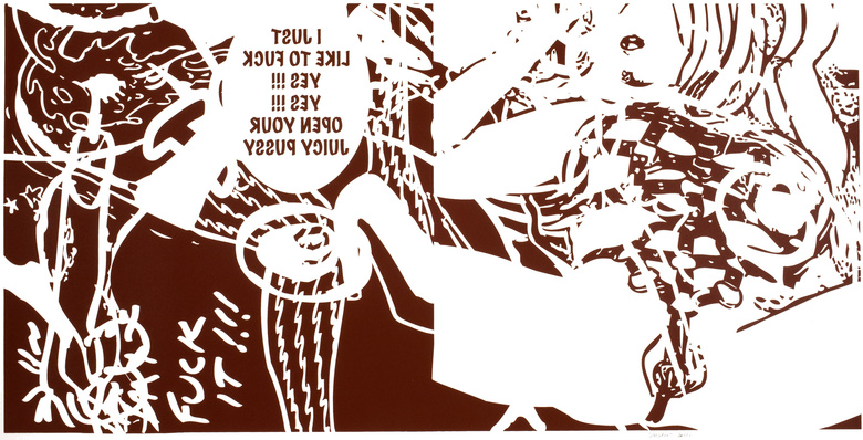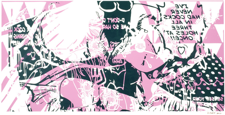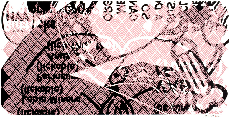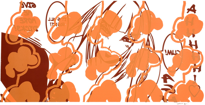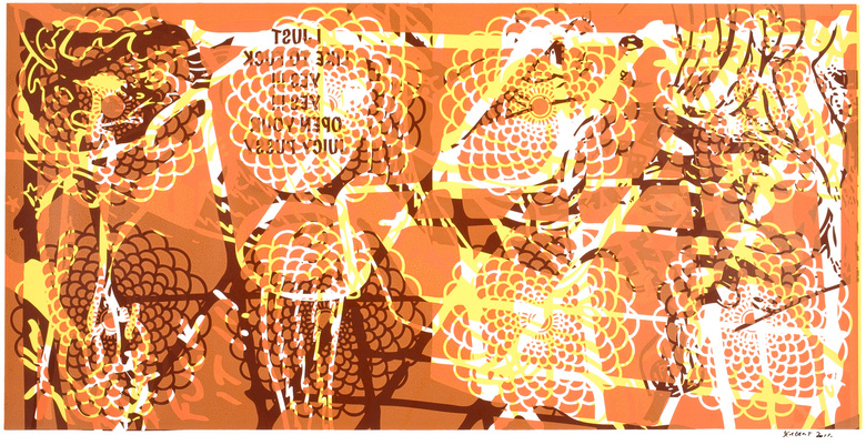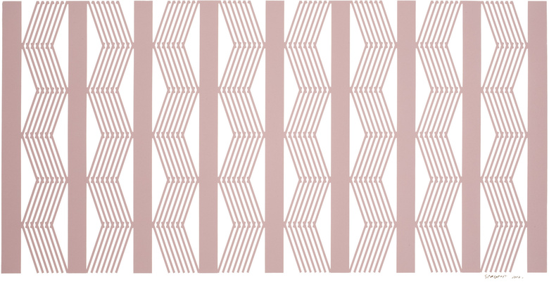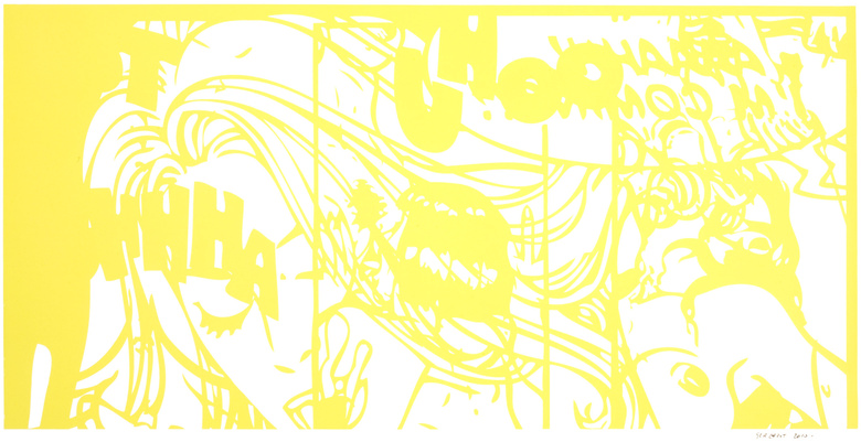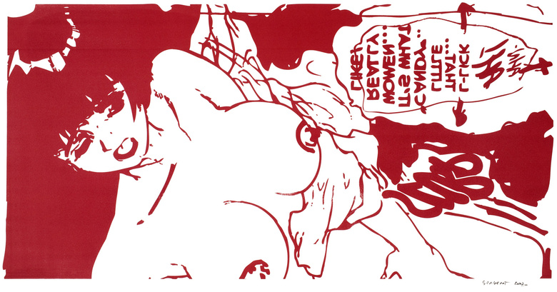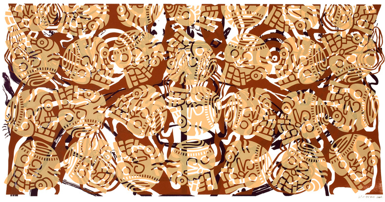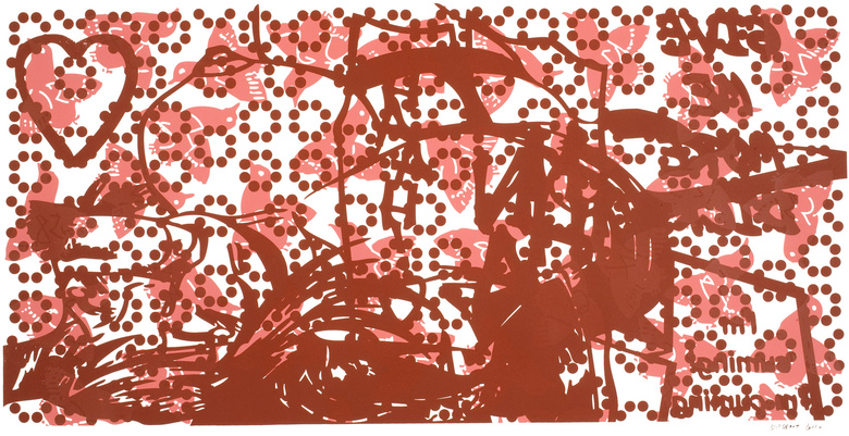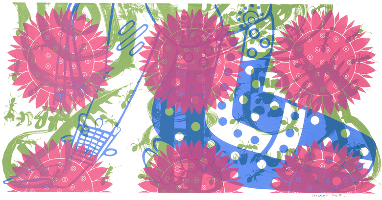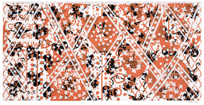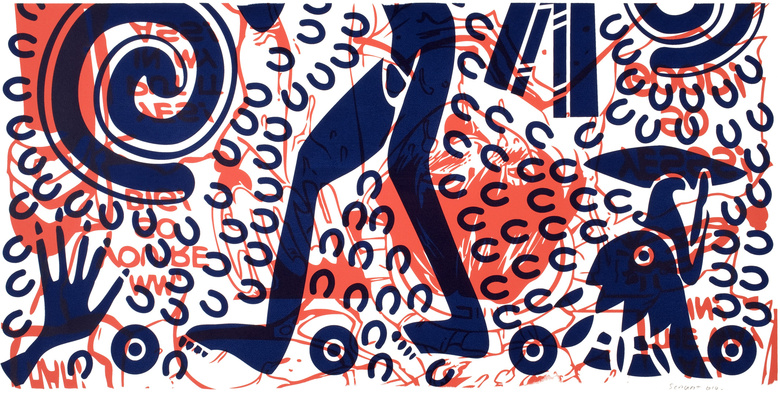 Monoprint, acrylique sérigraphiée sur papier Rives B.F.K blanc, 61 x 107 cm