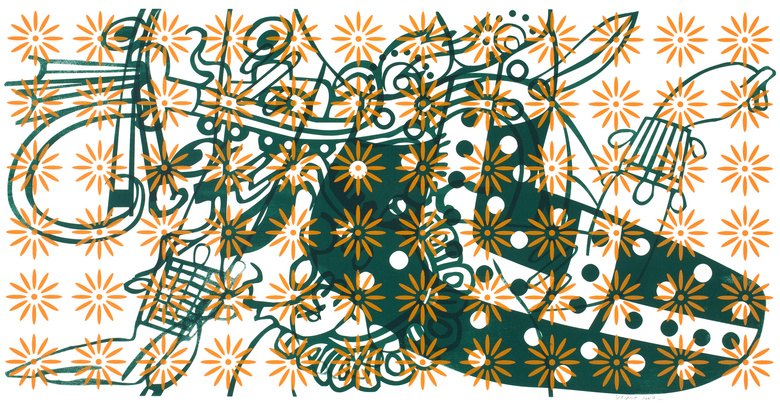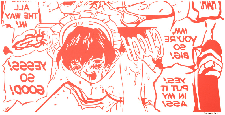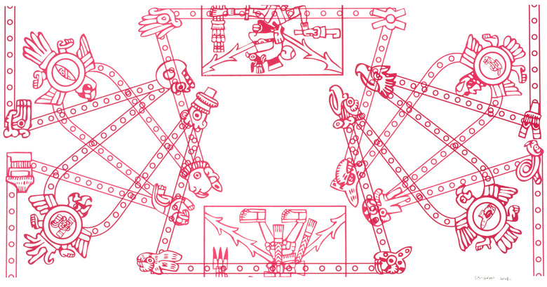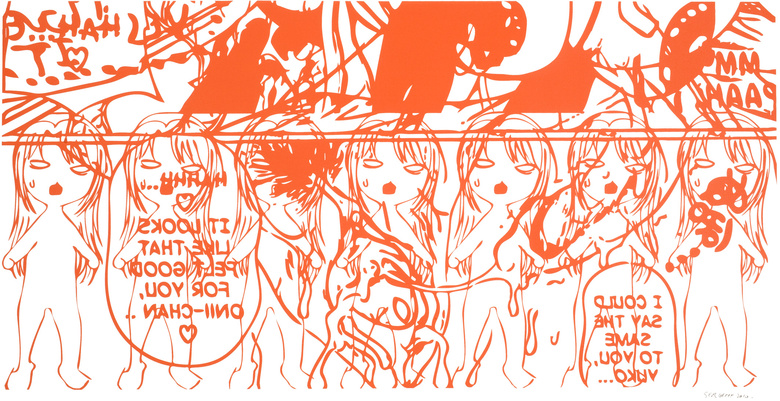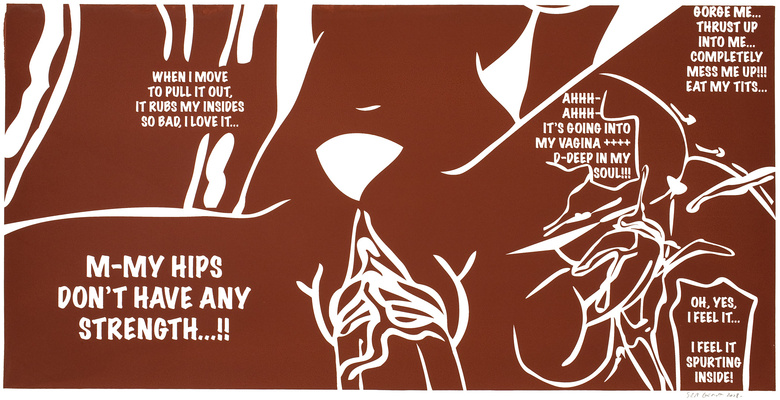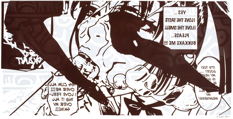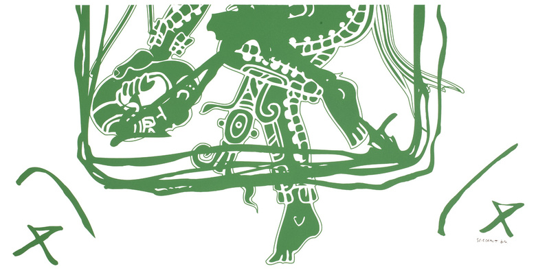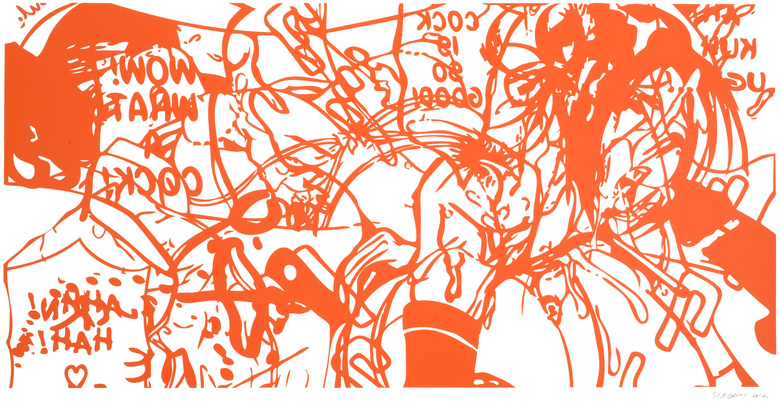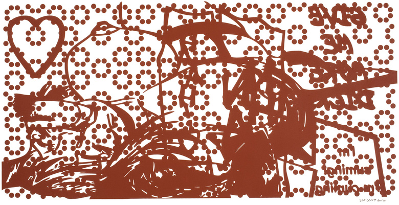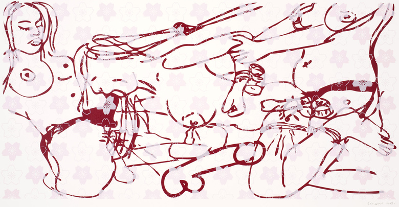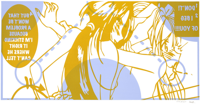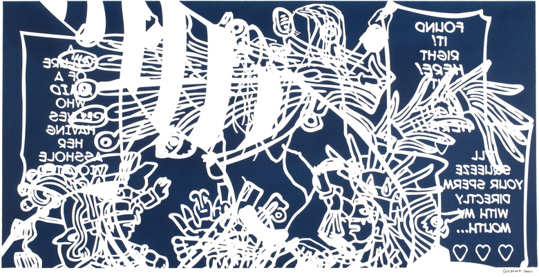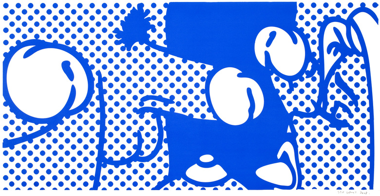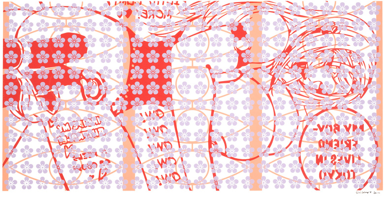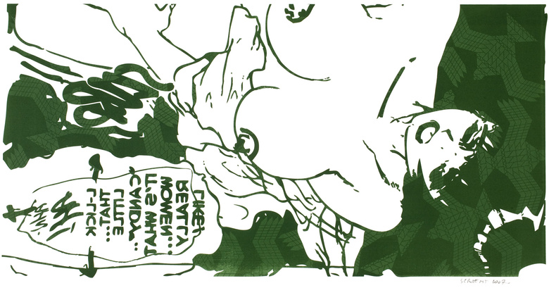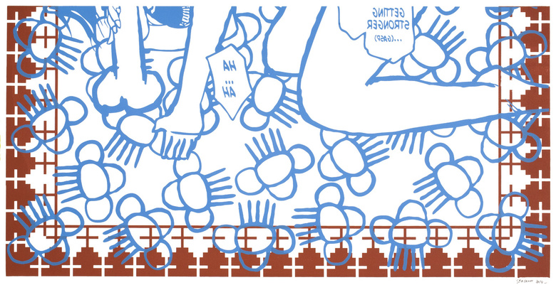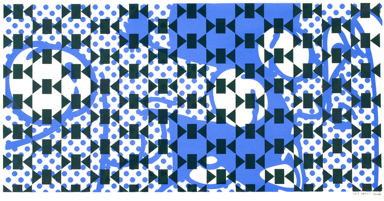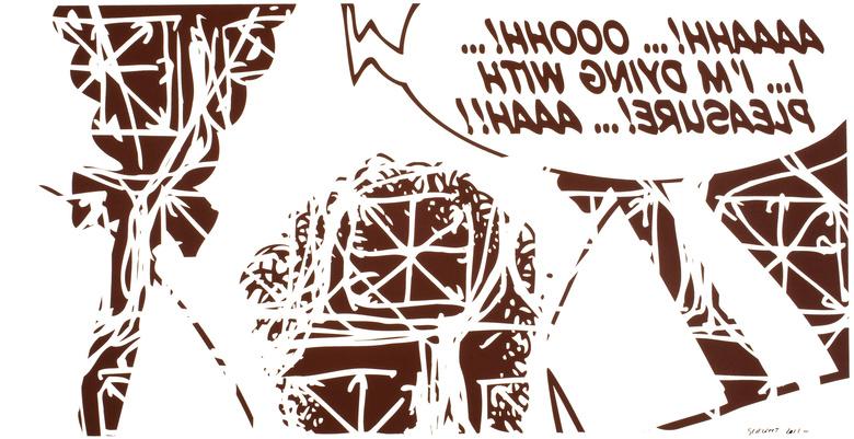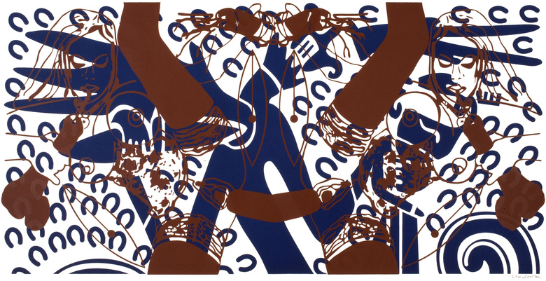 Monoprint, acrylique sérigraphiée sur papier Rives B.F.K blanc, 61 x 107 cm