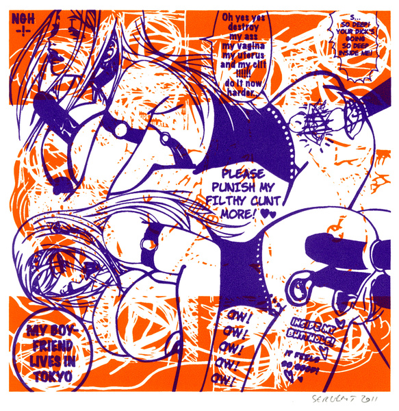 *Le Manga Hentaï, bande dessinée japonaise : image dérisoire, dessin non abouti, esquisse rapide ou transformation... Mélanges d'images érotiques et de textes violents, le Hentaï est un art populaire qui consiste à faire l'amalgame entre la pornographie et le dessin animé japonais provoquant auprès du public une fascination pour l'image érotique.