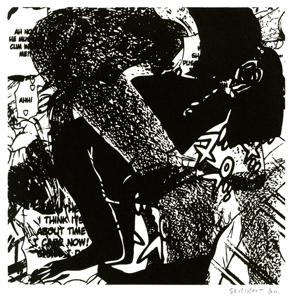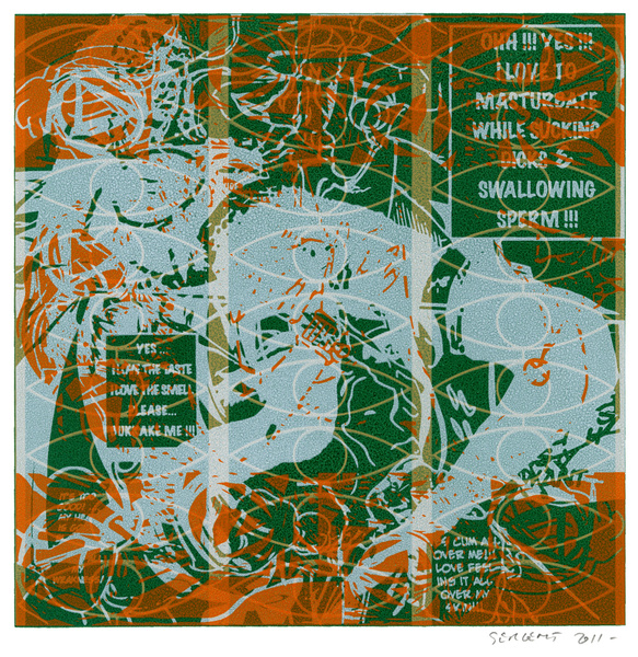 La série « Mangas, Yantras & Otras Cosas » a été commencée en automne 2009, sérigraphies sur papier Rives B.F.K., blanc, gris ou crème, 25 x 25 cm. Editions de 5 exemplaires et nombreux monoprints.