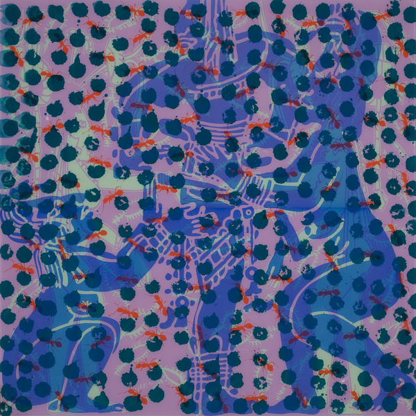 Les principaux thèmes de ses fusion paintings sont largement inspirés des cultures préindustrielles, du chamanisme, des Mangas Japonais, du Kundalini Hindou, de l'épopée mystique, des cycles de vie et du momentum cosmique. Son langage pictural se présente comme un lieu de rencontre iconographique autour d'éléments transtemporels et transculturels, d'archétypes puisés dans l'inconscient et l'imaginaire collectifs.