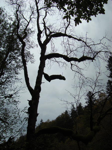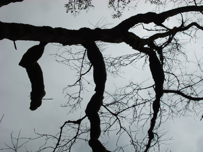 Ici l'arbre lui apparaît comme un Être vivant, debout, la tête en bas, enfouie dans la chevelure de ses racines, dressant des jambes en l'air, les écartant, puis se subdivisant en de nouvelles cuisses qui s'ouvrent, a leur tour, deviennent de plus en plus petites, À mesure qu'elles s'éloignent du tronc; là, entre ces jambes, une autre branche est enfoncée, en une immobile fornication qui se répète et diminue, de rameaux en rameaux, jusqu'à la cime; là encore, le fût lui semble être un phallus qui monte et disparaît sous une jupe de feuilles ou bien, il sort au contraire, d'une toison verte et plonge dans le ventre velouté du sol. in Là -bas, J.K. Huysmans, cité par Jean-Pierre Sergent dans son texte : De la beauté et cetera...