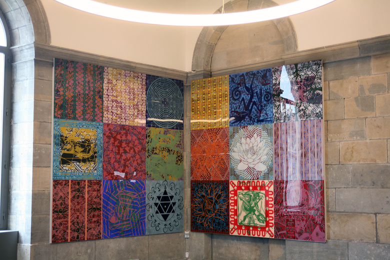 Photos of the filmed interview with artist Jean-Pierre Sergent and Thierry Savatier, Art Historian, at the MBAA of Besançon, July 2, 2021. Photos by Christine Chatelet, cameras by Lionel Georges.
