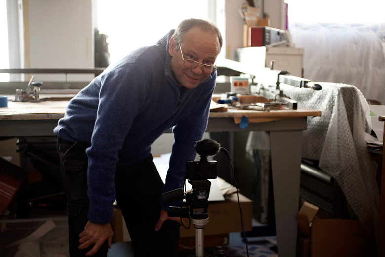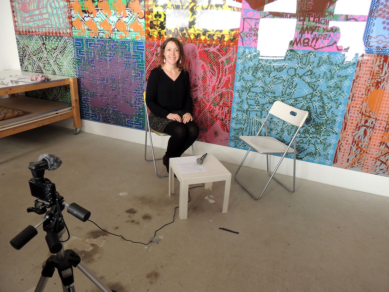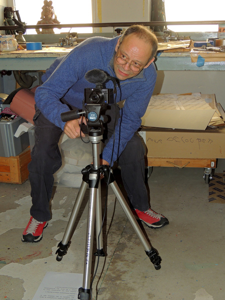 Série de photos prisent lors de tournages d'entretiens vidéos filmés à l'atelier et au Musée des Beaux-Arts de Besançon de 2016 à 2024