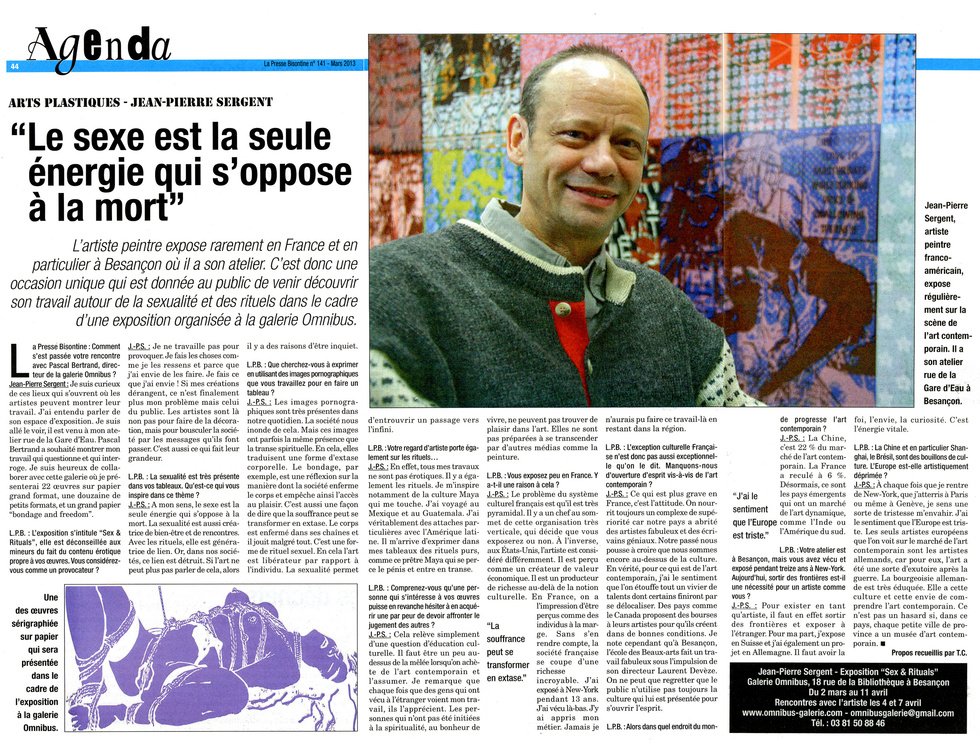 Interview with French Artist Jean-Pierre Sergent: Art, Sex and Subconscious