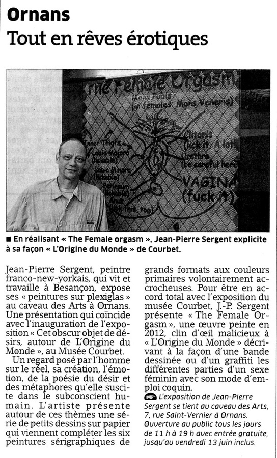 Oui, bien sûr ! Cette exposition rendue possible grâce à mes amis Maryse Garinginet et Pierre Bongiovani qui préparaient cette grosse exposition estivale « Voluptés » et qui sont venus à atelier en décembre 2019, où Pierre a découvert mon travail monumental. Nous avons décidé alors de présenter un florilège d'œuvres érotiques. L'érotisme et ses représentations picturales étant, par ailleurs, la source principale de mon inspiration. Le lieu industriel de l'ancienne usine le Chameau se prêtant parfaitement à l'accrochage de la grande installation murale monumentale Mécaniques cosmiques de la jouissance : Éros* & Hildegarde, extases mystiques & sexuelles de huit mètres quarante de long par trois mètres quinze de hauteur, ainsi que la réalisation de la petite cellule consacrée à Hildegarde von Bingen, avec des œuvres érotiques et mystiques accrochées à son intérieur et extérieur. Pour ce qui est de la jouissance de la vie, je ne suis pas du tout épicurien, ni jouisseur à tout prix et à tout va au sens Onfrayien du terme. Je vis plutôt très humblement, frugalement et simplement dans mon atelier de Besançon, suis végétarien, voyage très peu, ne sors presque jamais, ne bois que de l'eau et du thé vert.